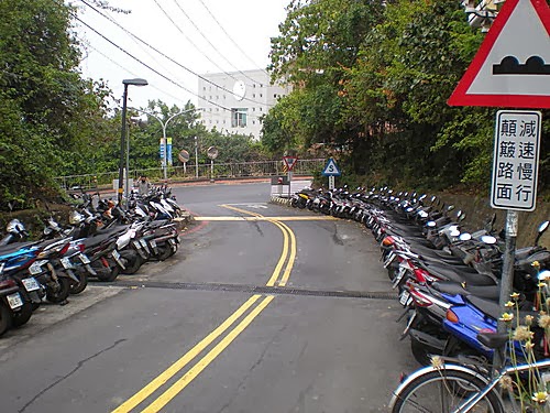 上坡後再來會有一長下坡(注意安全-校區內機車挺多的),下坡終點往右轉,接下來就都緩上坡了